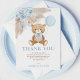 Este cartões de agradecimentos de pelúcia adorável tem certeza de colocar um sorriso nos rostos dos seus hóspedes! O esquema de cores azul, castanho e bege torna este design perfeito para um chá de fraldas de menino. Personalize o cartão com seus detalhes e, se quiser reorganizar o estilo e posicionamento do texto, pressione o botão "Clique para personalizar mais".