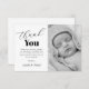 O chá de fraldas moderno agradece as cartas com um simples fundo branco, uma foto do seu bebê recém-nascido e um modelo de texto elegante que é fácil de personalizar.