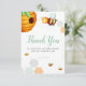 Cartões de agradecimentos chá de fraldas bonito com um tema de abelha. Muito fofo em tons de laranjas, cinzentos e verdes. Ilustrada e projetada por Patricia Alvarez.