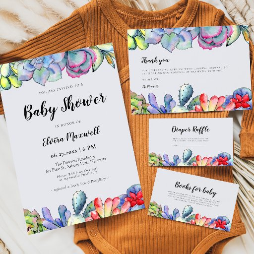Cartão De Agradecimento Chá de fraldas de aquarela de cacto sucessivo