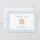 Coelho clássico do coelho legante no cartões de agradecimentos de chá de fraldas branco e azul do bolinhas.