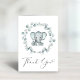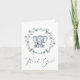 Um cartões de agradecimentos dobrado, bonito e neutro, com "Obrigado" em um roteiro de na moda com um inchaço cardíaco e uma aquarela de um elefante bebê verde-menta pastel em uma coroa de verde-eucalipto. No dentro, personalize seu obrigado, você envia uma mensagem e adiciona seu(s) nome(s) em um script de assinatura ou deixa o vazio para uma nota manuscrita.