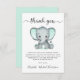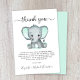 Cartões de agradecimentos bonito e neutro de gênero com "obrigado você" em um roteiro de cinza com baloiços e uma cor verde-d'água pastel de um elefante para bebês. Personalize seu obrigado e adicione seu(s) nome(s) em um script de assinatura ou deixe o vazio para uma nota manuscrita.