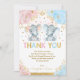 Cartão De Agradecimento Chá de fraldas de Elefante Rosa Azul