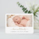 Este modelo de cartões de agradecimentos de fotografia simples apresenta uma aparência moderna e nítida. A forma padrão é cantos arredondados, mas os cantos nítidos padrão também funcionam maravilhosamente com este design, então tente ambos os modos de edição e veja quais são as suas marcas! Nós demos a esta design minimalista um salto de pântano com 'amor e obrigados abaixo da foto em uma fonte moderna fluente que consegue ser elegante e vivo ao mesmo tempo. Adoramos o florescimento estilizado e alongado em ambas as extremidades. Para destacar este aspecto da design, escolhemos um tom de ouro elegante às vezes chamado Califórnia Dourada para a parte 'amor e obrigado' da design. Você pode facilmente editar este e qualquer outro texto para se adequar ao seu gosto, e também pode alterar a fonte e a cor do texto. Escolhemos preto como a configuração padrão para o texto do nome do seu bebê na frente, e tons de cinza para o texto na parte traseira. Colocamos algum texto de marcador de posição no verso para que você substitua por sua própria mensagem. Mas, por favor, não se sintam restringidos por isto. Se você preferir excluir nosso texto de marcador de posição e manter a parte de trás totalmente vazio para que você possa escrever uma nota manuscrita em cada cartão, você pode fazer isso. Ou talvez você queira substituir nosso texto por sua própria mensagem de gratidão e seu próprio fechamento e então assinar seus nomes quando você receber os cartões. Em qualquer caso, certifique-se de que o nosso texto de amostra/espaço reservado está apagado em ambos os lados do cartão! O plano de fundo padrão na frente é transparente para que a cor do papel sirva simplesmente como tom base. Na parte de trás, escolhemos uma matiz de fundo que não é bem branca, é uma cinza muito clara chamada Fumaça Branca. Você pode mudar isso escolhendo outra cor nas ferramentas de edição se quiser, ou talvez você queira torná-la transparente como está na frente. Esperamos que você goste de experimentar com vários aspectos da aparência desta carta de acordo com o seu gosto e a torne única com as ferramentas intuitivas de design e sua inspiração!