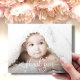 Chá de fraldas personalizado adorável obrigado cartões de nota com foto de bebê/imagem (ou mamãe a ser). Script de caligrafia em branco com falso rosa dourado confetti. A parte traseira da placa tem cor rosa com opção personalizada de adicionar seu texto. Cartão perfeito para qualquer tema do chá de fraldas.