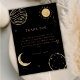 Espaço exterior elegante e minimalista estrela da Lua Galáxia em convite a chás de fraldas a preto e dourado