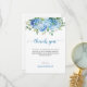 Cartão De Agradecimento Chá de fraldas de Hydrangea azul