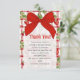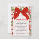 Cartões de agradecimentos de morango e arco de coquete vermelho. Os obrigados de mensagem convidaram para vir ao chá e seus presentes. Clique no botão personalizar para adicionar seus detalhes pessoais. Você poderá modificar nomes, cores, tamanhos e estilos de fonte. Para personalização avançada, clique em editar design.