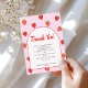 Mande uma nota sincera de obrigados com este chá de fraldas doce de bagas, obrigado, cartas. Apresentando um fundo bonito com o tema do morango e tons cor-de-rosa macio, essas placas combinam perfeitamente com um chá de fraldas de morango giro. O design é fácil de personalizar com sua mensagem e está disponível como cartões impressos.