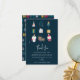 Cartões de agradecimentos de Natal Festivo. Design apresenta um fundo azul-marinho moderno com pequenas ilustrações festivas bonitinhas e um obrigado personalizável que você modelo em texto branco.
