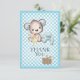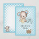Envie estas notas agradecidas adoráveis aos seus convidados; eles vão adorá-las. Urso castanho-bonito em um fundo azul-bebê e branco com coelho, elefante e um cesto de piquenique.