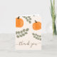 Um chá de fraldas neutro de gênero dobrou as cartas de agradecimento. Este design apresenta uma fonte moderna de escrita de caligrafia, abóboras laranja e ramos verdes de Eucalipto.