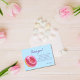 Cartões de agradecimentos Chá de fraldas azul-esbranquiçado com uma rosquinha rosa na cor d'água. É muito fácil personalizar, com seus detalhes pessoais.