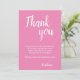 Cartões de agradecimentos de tipografia rosa simples. Um simples design com tipografia moderna e uma nota de agradecimento sobre um fundo rosa. Personalize o cartão com seu nome. Mude ou deixe a nota de agradecimento. Obrigado os convidados do chá de fraldas. Você pode usar este cartão para qualquer outra ocasião, apenas ajustar o texto.