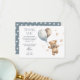 Cartões de agradecimentos de chá de fraldas de aquarela. Design apresenta um ursinho de pelúcia bonito com um balão azul e neutro flutuando entre as estrelas. Correspondendo itens em nossa Coleção 'Nós podemos esperar'.