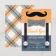 Cartão De Agradecimento chá de fraldas do marinho laranja bigode