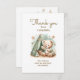 Envie uma nota de gratidão com este charmoso cartão de obrigado do Camp Baby. Apresentando um ursinho aconchegante, uma tenda de floresta e tons verdes e bronzeados de sábio macio, esta carta corresponde perfeitamente ao tema do chá de fraldas "Aventura é Chamada". Quer você esteja agradecendo aos convidados por seus presentes, amor, ou presença no seu dia especial, este cartão traz um toque quente e caprichoso para sua mensagem. Personalizável com o seu nome ou mensagem, é uma maneira séria de acabar com a sua celebração em uma nota doce.