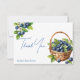 Cartões de agradecimentos doce de chá de fraldas de mirtilo, cesto com mirtilos para o chá de fraldas de morango de verão convidam a ser neutro de gênero, obrigado cartas