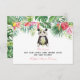 Design de chic único para um convite de Chá de fraldas com panda de bebê agudo, buquê floral exótico de aquarela tropical, tudo sobre fundo branco. Use a ferramenta Personalizar para adicionar suas informações. Você também pode alterar a cor do plano de fundo. Itens correspondentes podem ser encontrados em minha Coleção de Selvas.