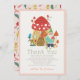 Este cartões de agradecimentos de chá de fraldas de uma garota fofa e moderna apresenta um gnomo em frente a sua casa de cogumelos com cogumelos em um fundo creme enquadrado por uma fronteira de rosa claro. O verso apresenta um fundo de rosa claro com padrões de cogumelos. Personalize-o para as suas necessidades. Você pode encontrar produtos correspondentes na minha loja.