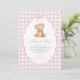Cartão De Agradecimento Chá de fraldas Rosa Gingham Teddy Bear
