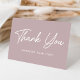 Cartões de agradecimentos simples com "Obrigado" exibido na frente em um script branco em negrito com um fundo roxo empoeirado. Personalize a frente do cartão com seu nome ou texto personalizado. A dentro do cartões de agradecimentos roxo empoeirado exibe a mensagem e os nomes personalizados.