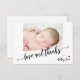 Modelo de cartões de agradecimentos de chá de fraldas de de e obrigado minimalista de tipografia moderalista da Tendy personalizado com fotos de recém-nascidos e seu texto.