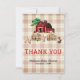 O Cartões de agradecimentos de chá de fraldas da Trendy Rustic Country apresentava quintal com animais de fazenda, celeiro vermelho e fundo xadrez.