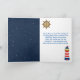 Este cartões de agradecimentos bonito e divertido apresenta um urso marinheiro náutico num convés de madeira com uma gaivota e um caranguejo. Ao fundo há um farol vermelho e branco, um pássaro giro em um veleiro, ondas oceânicas e um céu azul marinho estrelado à noite. O texto combina fontes em negrito e sem serifa para uma aparência na moda e moderna. Isto é perfeito para um chá de fraldas temático náutico.