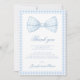 Cartão De Agradecimento Chá de gravata de arco de gingham azul-bonito