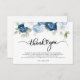 Cartão De Agradecimento Chá de Noiva em Azul Empoeirado com Flores e Letra
