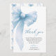 Adicione um toque de charme suave à sua gratidão de posto com este Cartões de agradecimentos de Chá de panela Arco Azul Coquette. Apresentando um delicado arco azul pastel, florais sutis e roteiro elegante, este cartão complementa perfeitamente um tema de chá de panela feminino e romântico. Quer você esteja agradecendo aos convidados por seu amor, presença ou presentes pensativos, este cartão fornece sua mensagem com estilo de eterno e doçura.