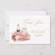 Destinado a seduzir os sentidos, este Cartão de Agradecimento apresenta uma ilustração impressionante em aquarela de uma charcutaria deliciosa adornada com uma variedade de queijos salgados, uvas suculentas e um copo de vinho perfeitamente harmonizado.
