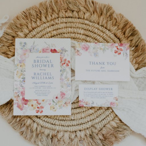 Este belo cartões de agradecimentos floral é perfeito para celebrar a noiva a ser! O design apresenta uma borda colorida com flores pastel, cor-de-rosa suave, pêssego, laranja, azul e amarela, e certamente traz à tona uma sensação alegre e de primavera. Celebre a futura Sra. com este chá de panela floral espantoso que você faz!