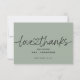 Simples script moderno "obrigado você" com um coração ligando as palavras cartões de agradecimentos chá de panela. Personalizar ou excluir texto para mensagem manuscrita no verso.