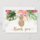 Este cartões de agradecimentos de verão tem lindas flores tropicais de aquarela com falso confete de ouro e um abacaxi dourado falso. Coordenar a caligrafia dourada elogia o adorável design floral.