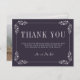 Um lindo cartões de agradecimentos com "Obrigado" e texto na frente, e uma foto da noiva e noiva no verso. A parte de texto pode ser digitada para enviar a cada convidado ou removida para gravar uma nota para cada convidado. Coordena-se perfeitamente com a coleção Charlotte Curated Colors.
