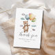 Cartão de agradecimento chato de chuveirinho de bebê balão de urso. Fácil de alterar o texto. Desenho de aquarela fofo.