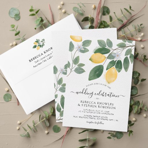 O cartões de agradecimentos gráfico apresenta um roteiro elegante de caligrafia, uma textura rústica afeta o fundo branco, os limões de rega dos citros de aquarelas, delicadas flores brancas de flor branca e verde pintado à mão. Personalize com suas informações ou clique em "personalizar mais" para editar estilos de fonte, tamanho e cores. Também pode ser personalizado no verso com sua própria mensagem digitada ou excluir esse espaço para escrever manualmente.