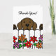Cartoon Engraçado de Chocolate Labrador Obrigado a receber cartão. Um Labrador de Chocolate inocente está te vigiando atrás do leito de flores e parece que quer dizer algo para você! Você pode personalizar o texto como quiser. Cartoon Labrador Retriever Dog Whimsy e engraçado criado por Naomi Ochiai do Japão. Bom presente para amantes de cães que adoram Laboratórios de Chocolate.