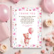 Cartão de agradecimento de chuva de bebê ursinho fofo com balão em rosa pastel e padrão floral. Você pode personalizar facilmente os textos em fontes modernas. Por favor, verifique minha loja Gulden Designs para mais produtos desta coleção.