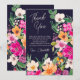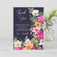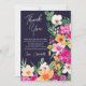 Expresse sua gratidão com esta ilustração elegante e moderna de flores de primavera e verão, com flores silvestres grandes e lindas e escrita à mão para cartão de agradecimento de chuva de noiva, com tipografia de caligrafia moderna e flores neon rosa, laranja, verde e amarelo em azul naval