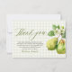 Diga obrigado com um estilo doce e atemporal com este Cartão de Agradecimento para Chá de Noiva "Par Perfeito" em Gingham Verde Moderno. Com um fundo gingham verde suave, peras delicadas em aquarela e tipografia elegante, este design parece fresco, romântico e encantadoramente sem esforço.