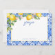 Cartão de agradecimento do chá de panela de limões em aquarela com azulejos azuis italianos.