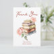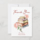 Cartão de agradecimento da chuva de presentes do novo capítulo do livro de histórias, cartão de agradecimento da chuva de presentes temática de leitura de livros, pilha de livros em aquarela e rosas rosadas em fonte manuscrita casual