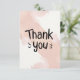 Um belo e elegante cartões de agradecimentos com as palavras "Obrigado" escrito em um roteiro fluente contra um fundo aquoso. O plano de fundo apresenta delicadas tonalidades cor-de-rosa e pêssego, com pinceladas sutis, acrescentando textura e profundidade.