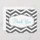 Este vibrante cartão postal de mensagem de agradecimento com ziguezague cinza, branco e turquesa é uma maneira linda e acessível de enviar sua mensagem de gratidão. Clique em personalizar para adicionar seu próprio texto no verso do cartão postal.