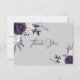 elegante, roxo e flores brancas, com cinzas românticas de prata, no cartões de agradecimentos de fundo da cinza