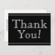Este design tradicional de cartão postal de agradecimento apresenta a mensagem "Obrigado!" na frente, juntamente com uma mensagem personalizável no verso. Pode ser usado para mostrar gratidão a alguém que participou de um casamento, um funeral, uma formatura ou algum outro evento.